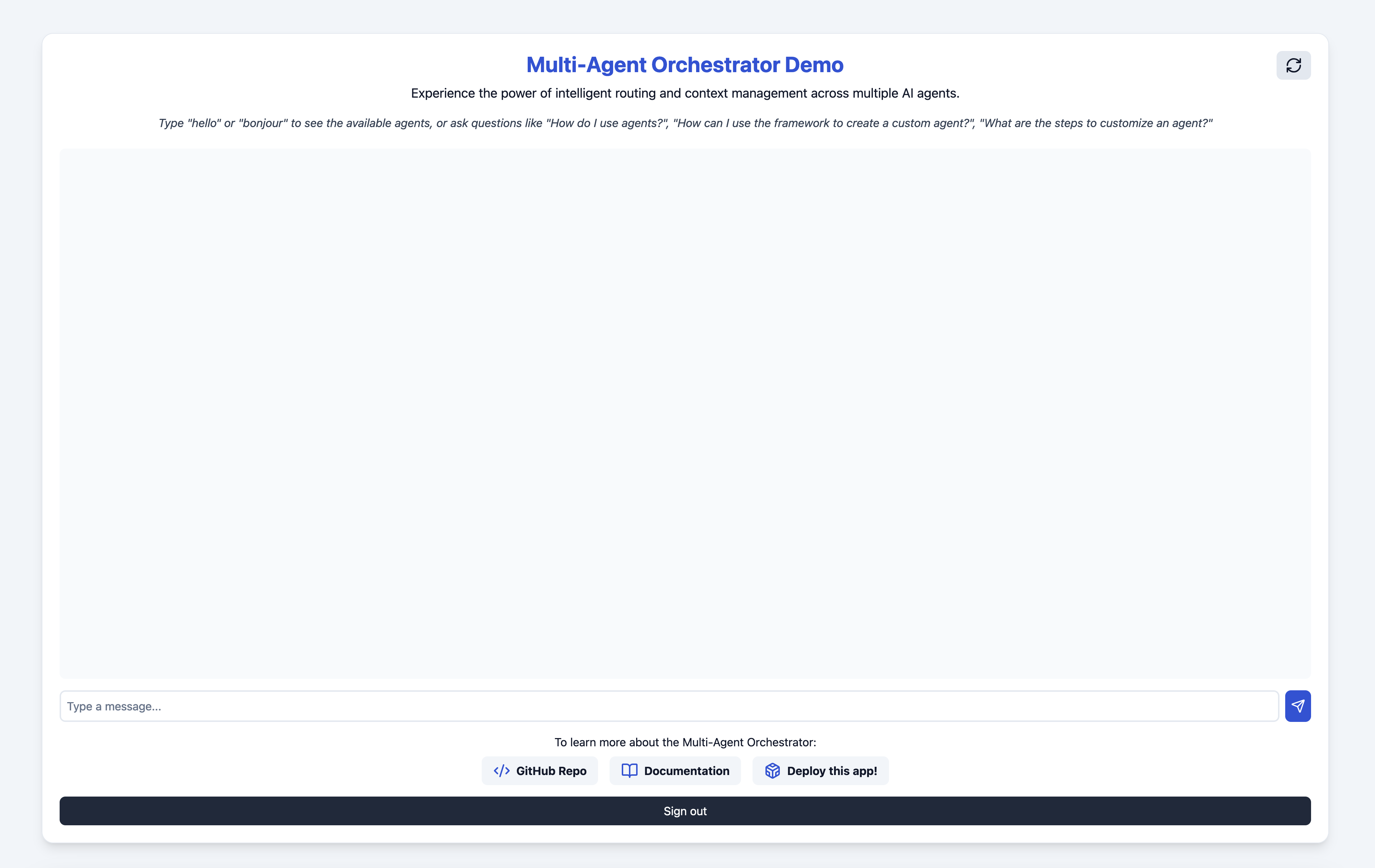 By deploying this demo web app, you can interact with your Agent Squad System in a user-friendly interface, showcasing its capabilities and helping you understand how it performs in a real-world scenario.